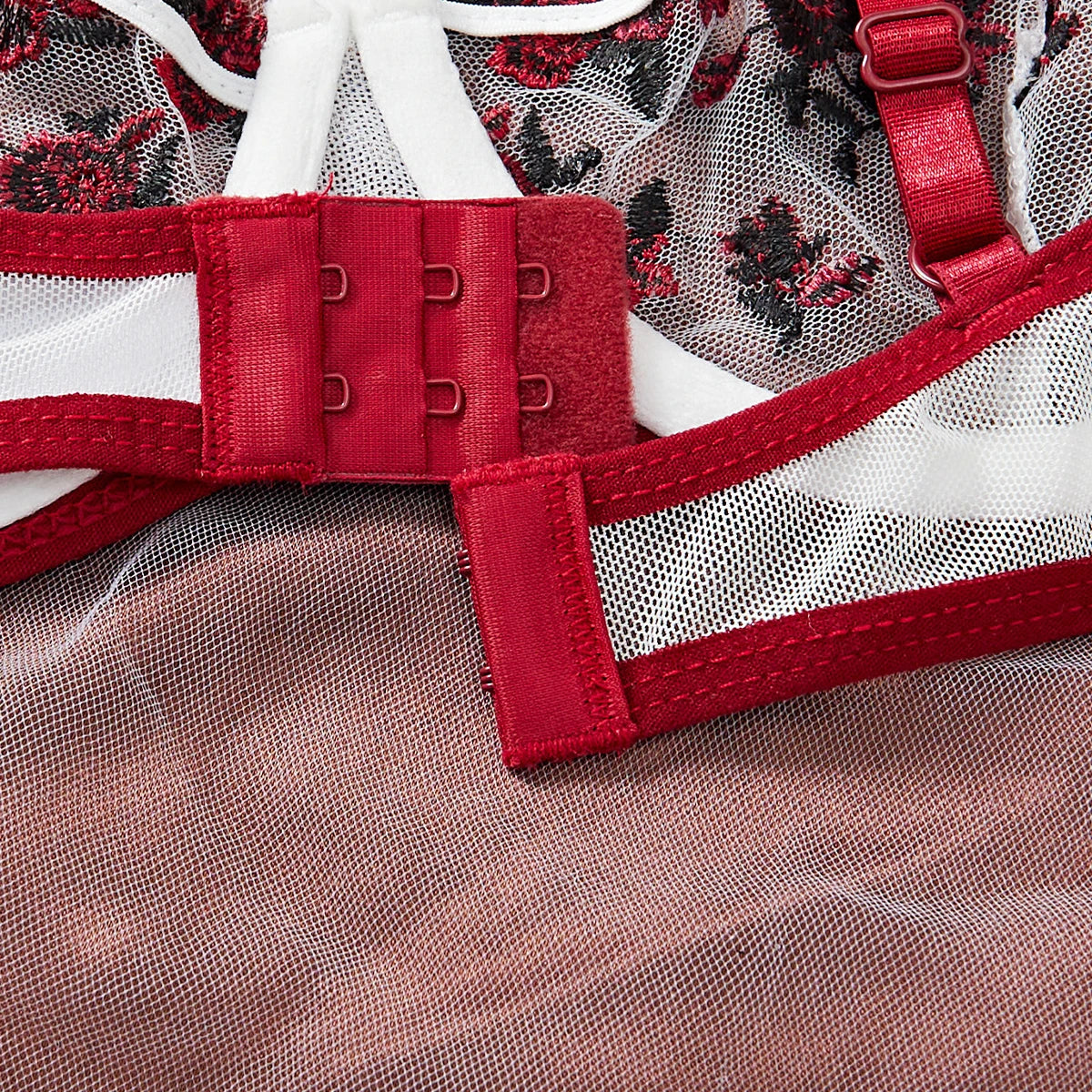 Pour yourself into this set and feel every inch of your confidence awaken. Let the sheer lace tease beneath clothing for a subtle, provocative thrill during the day, or reveal it fully for nights of intimate play. The delicate floral embroidery catches the light and every eye, drawing attention to your curves and hinting at what lies beneath. Perfect for foreplay, bedroom fantasies, or commanding confidence wherever you go.