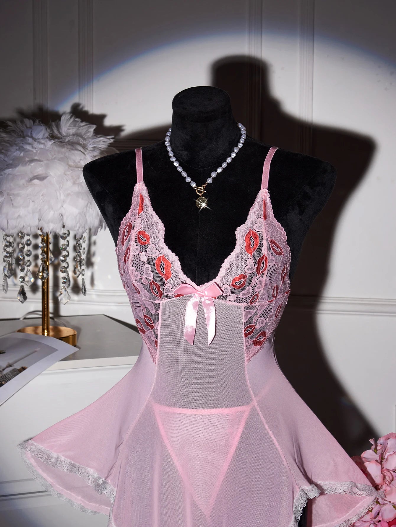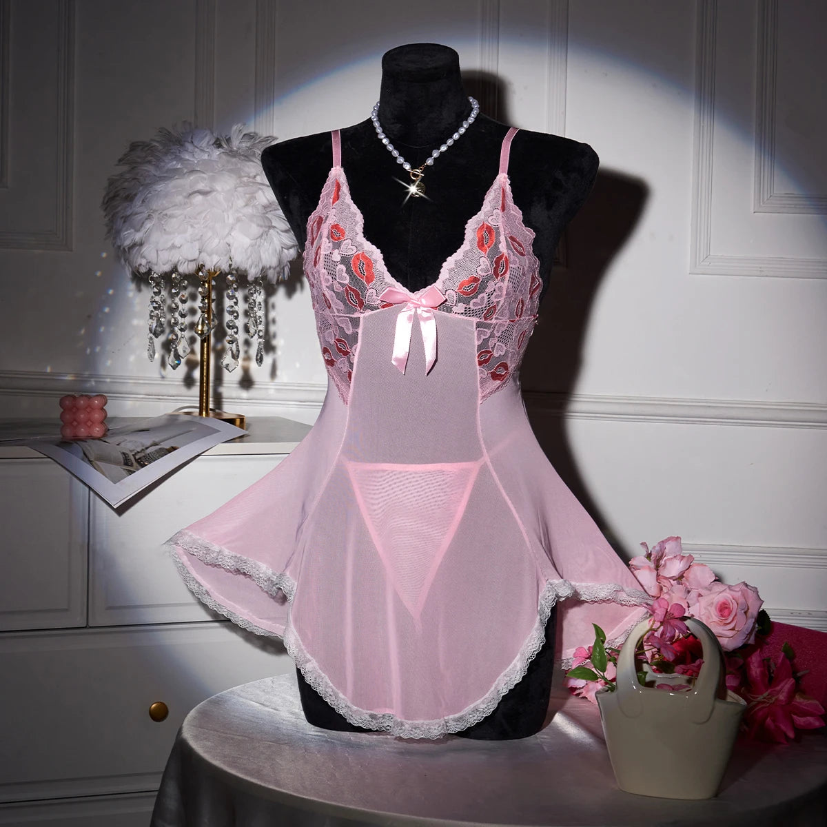 Frivolous Delights Ultra Thin Lace Mesh Sex V-Neck Backless Lingerie
